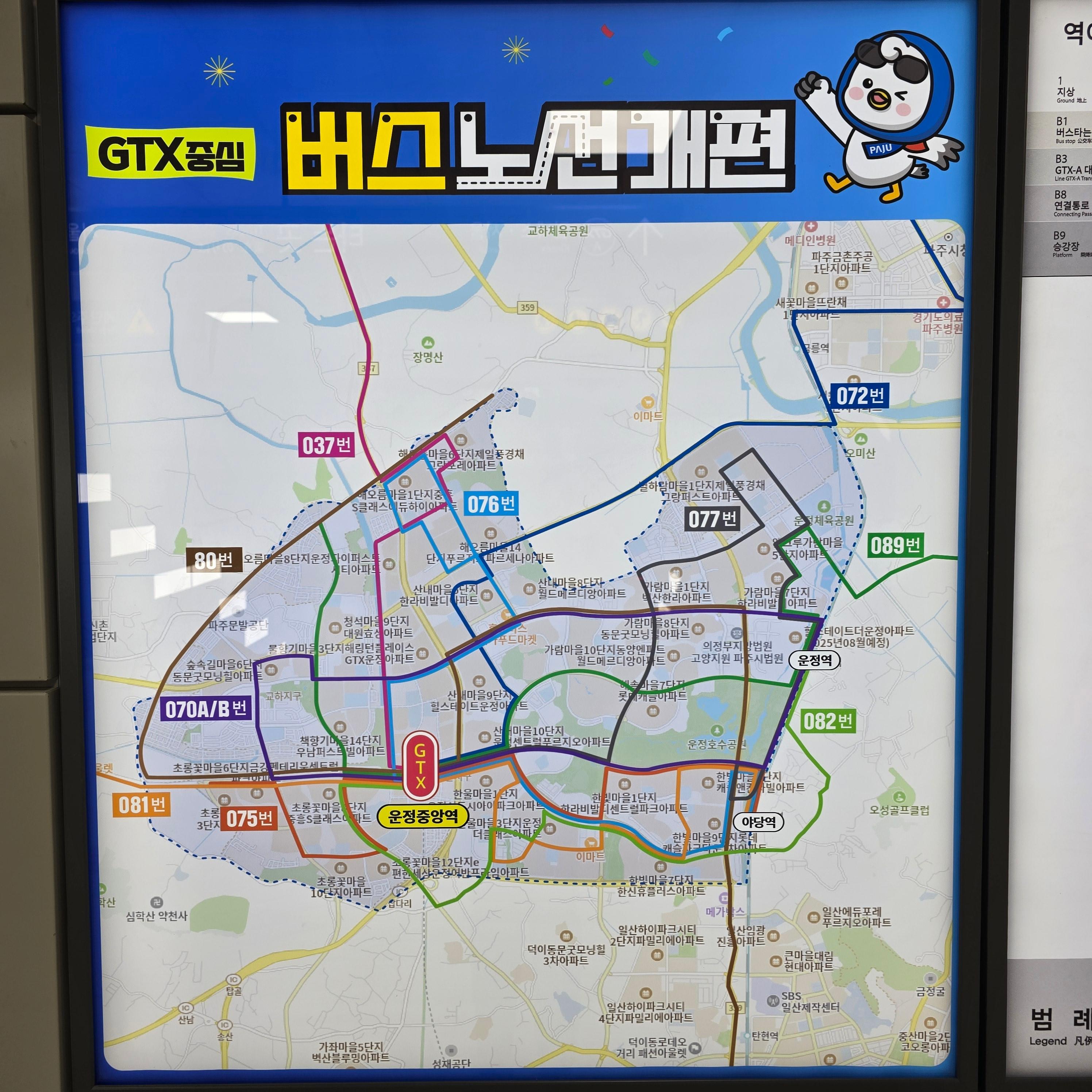 gtx-a운정중앙역 개통으로 파주 버스 노선 변경이 많이 이뤄졌습니다.